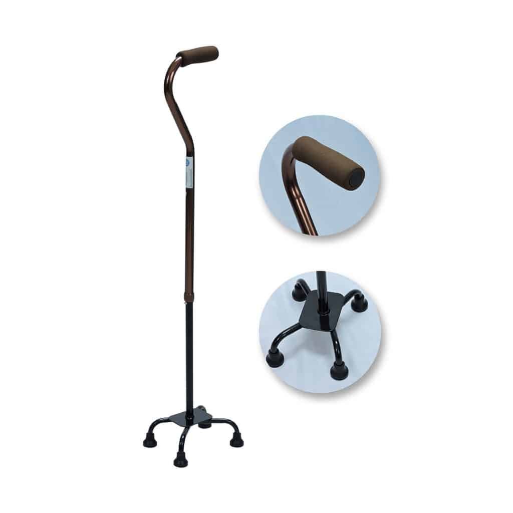 Bastón Cuatro Apoyos, De base Pequeña, Altura Graduable, Ambidiestro, En aluminio.