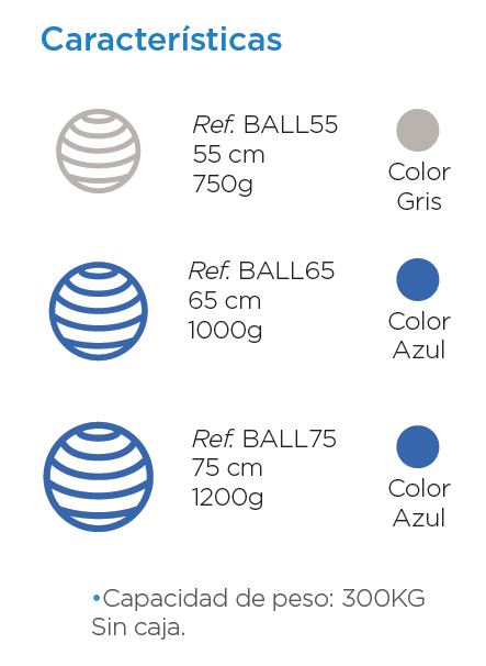 Balón ejercitador antiponchadura para uso profesional e institucional. Fabricado en resina de PVC de alta resistencia que proporciona seguridad y comodidad al paciente al momento de la terapia. No incluye bomba para insuflar.