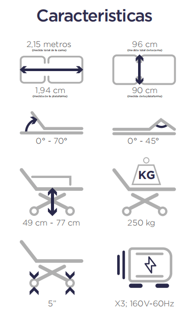 Diseñada para ofrecer la máxima comodidad y funcionalidad, esta cama hospitalaria eléctrica es ideal para entornos clínicos y hospitalarios, asegurando un manejo eficiente y seguro del paciente.