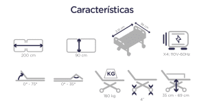 – Barandas abatibles que garanticen la seguridad del paciente y permitan guardarlas para tener una transferencia sin obstáculos.