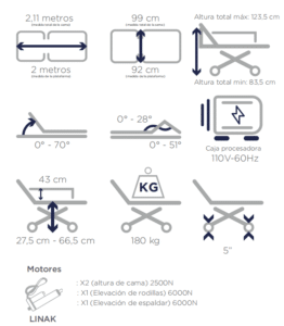Por su sistema de trendelemburg es ideal para personas con alteraciones cardio pulmonares y reflujo, evitando ahogamiento con secreciones.