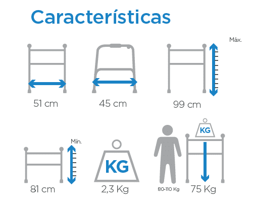 Su diseño fijo, plegable y con altura ajustable permite una adaptación óptima a cada usuario, asegurando comodidad y funcionalidad en todo momento. Es un dispositivo liviano y fácil de transportar, ideal para uso en el hogar, hospitales o centros de rehabilitación.