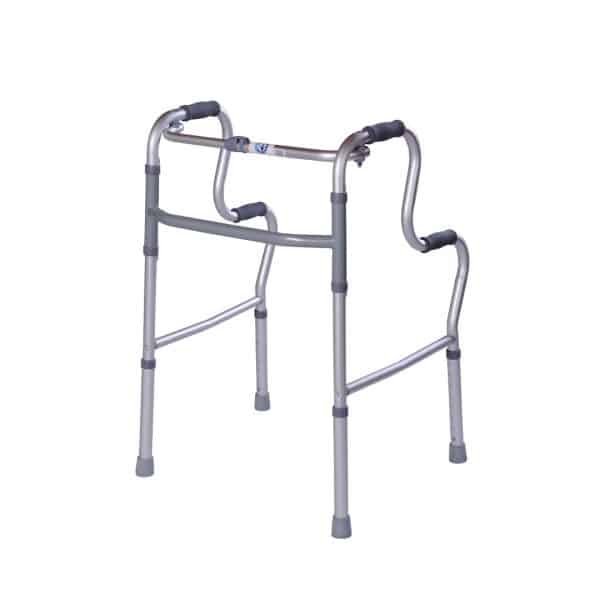Caminador en aluminio anonizado, con doble apoyo, ,fijo, altura graduable y plegable.
