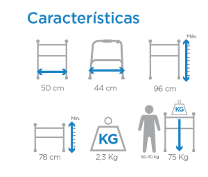 Fabricado en aluminio de alta calidad, este caminador combina ligereza y durabilidad, facilitando su uso en distintos entornos. Su diseño ajustable en altura permite que se adapte a personas de diferentes estaturas, mientras que su sistema de ajuste paso a paso o fijo se adapta a las necesidades individuales de cada usuario.