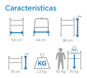 Fabricado en aluminio de alta resistencia, este caminador combina ligereza y durabilidad, facilitando su uso diario sin comprometer la seguridad. Su diseño plegable y ajustable en altura permite que se adapte a diferentes estaturas y se almacene con facilidad cuando no está en uso.