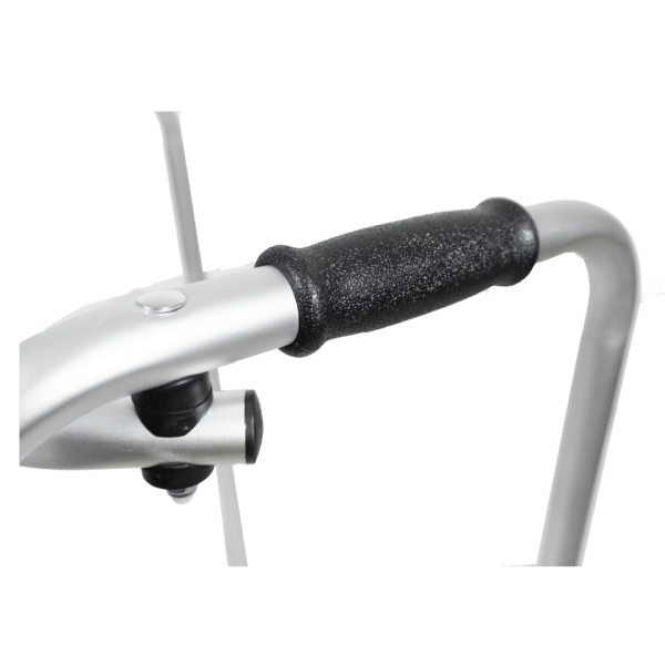 Caminador en aluminio una barra, puede ser ajustado paso a paso o fijo, color gris y negro , altura graduable, plegable.