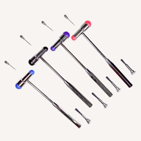 - Cabeza de goma suave que permite una percusión controlada.