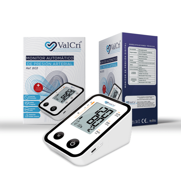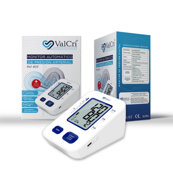 Dispositivo de medición para uso de adultos en la parte superior del brazo en casa o en el consultorio de su médico. Permite una medición muy rápida y confiable de la presión arterialsistólica y diastólica, así como el pulso a través del método oscilométrico.