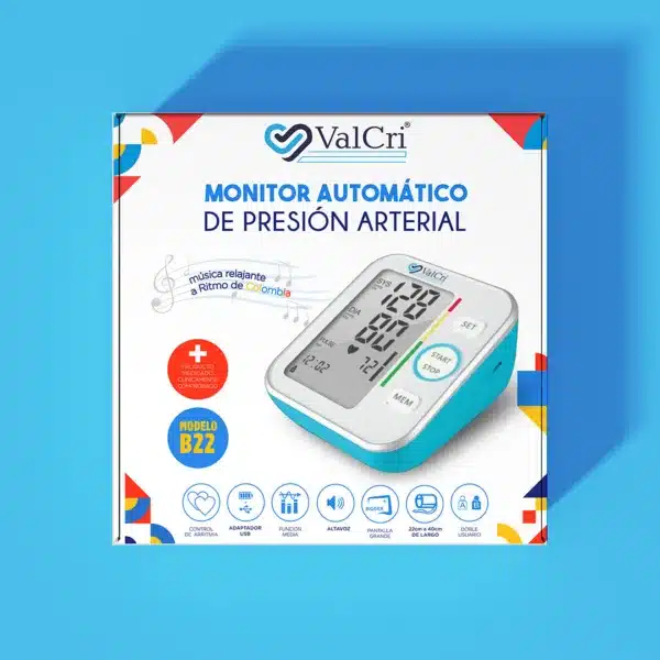 Monitor de presión arterial recomendado para uso en el hogar. Cuenta con función de altavoz, música relajante, con valores establecidos por la OMS para un prediagnóstico.