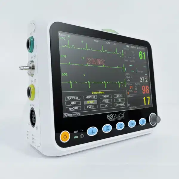 El monitor de paciente es un instrumento multifuncional diseñado para la monitorización de los signos fisiológicos vitales de pacientes adultos, pediátricos y recien nacidos. Este dispositivo permite el análisis completo de las condiciones fisiológicas de un paciente por medio de sus funciones de registro en tiempo real y exhibición de parametros tales como ecg, ritmo cardiaco,presión sanguinea no invasiva, saturación de oxigeno funcional,respiración, temperatura corporal, así como con las funciones de monitorización opcionales tales como