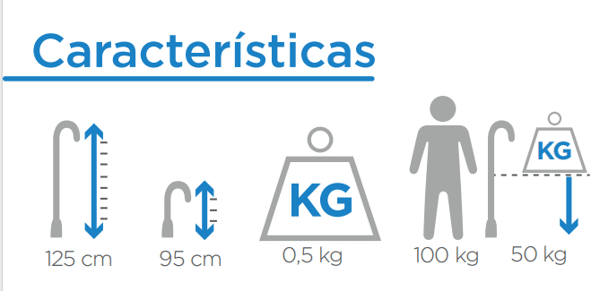 Muleta Canadiense en aluminio, graduable al antebrazo y a la altura de la persona.