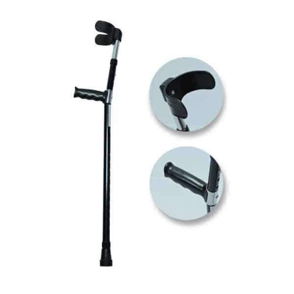 Muleta Canadiense en aluminio, graduable al antebrazo y a la altura de la persona.