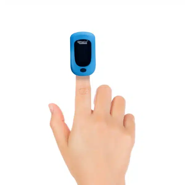 El oximetro de pulso puede monitorear la saturación de oxigeno ,la frecuencia de pulso y el indice de perfusión a través del dedo del paciente. Este dispositivo es aplicable al hospital,el hogar, el centro médico comunitario y despues de los deportes.