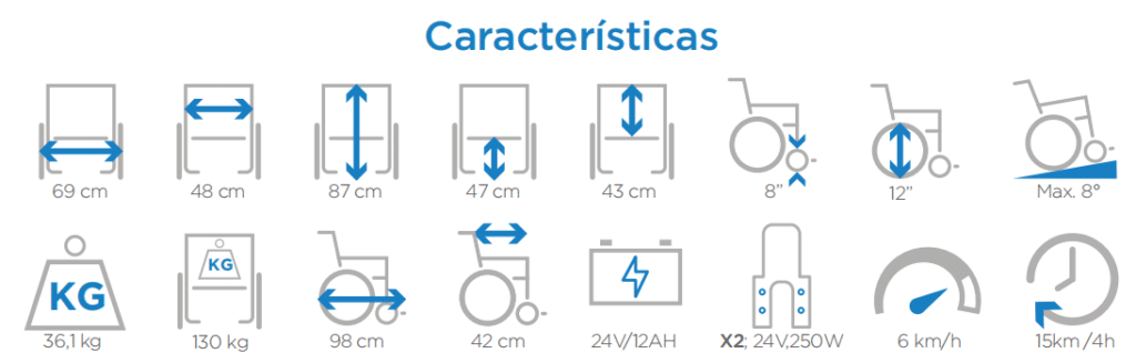 barros. Su joystick facilita el control para una movilidad eficiente.