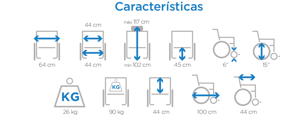 USOS: Las sillas de ruedas han sido diseñadas para personas con alguna limitación física y/o discapacidad, con dificultad para caminar, moverse o trasladarse. Se pueden utilizar en interiores. Estos modelos tienen una capacidad de peso de 100 kg