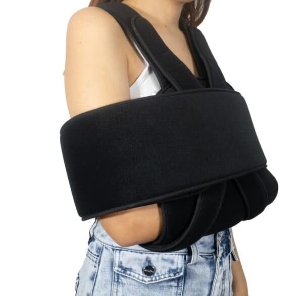 Proporciona soporte para el brazo mientras restringe el hombro y la parte superior del brazo.