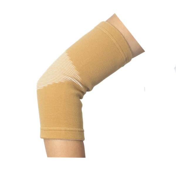 El soporte para el codo se estira en todas las direcciones, lo que promueve la fuerza y la circulación, y brinda un soporte cómodo para el codo. Su forma anatómica, forma tubular y suavidad lo hacen muy cómodo para usar a diario. Imperceptible debajo de la ropa.
