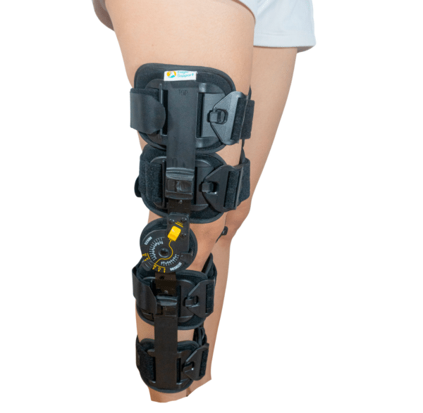 • Bisagra de rango de movimiento fácil de usar con topes de flexión y extensión de ajuste rápido para controlar y limitar la flexión y extensión de la rodilla.